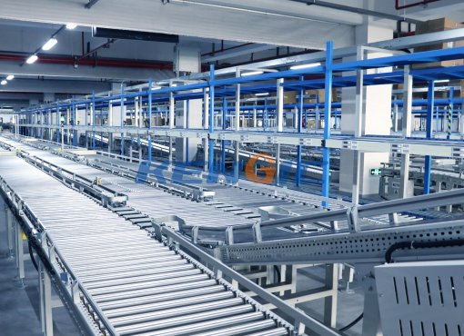 該系統(tǒng)包含:直線滾筒輸送機(jī)、轉(zhuǎn)彎滾筒輸送機(jī)、箱式提升機(jī)、頂升移載機(jī)、皮帶輸送機(jī)、轉(zhuǎn)向輪分揀機(jī)等。