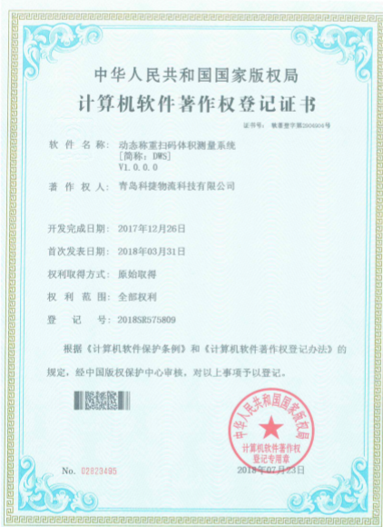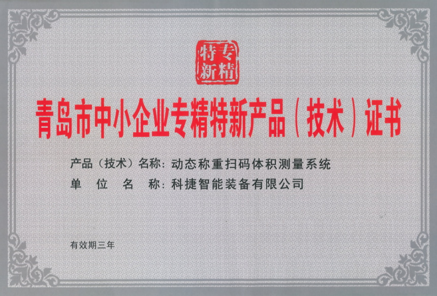 動態(tài)稱重掃碼體積測量系統(tǒng)-專精特新技術(shù)產(chǎn)品證書