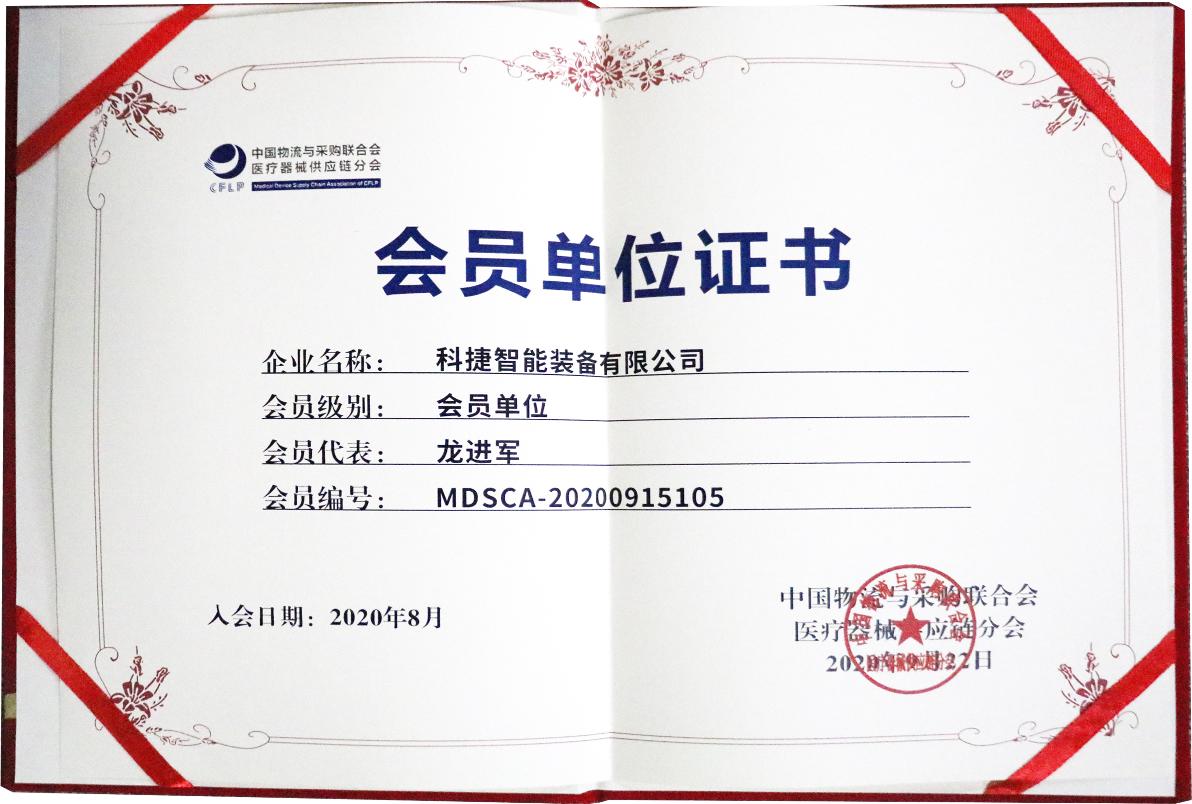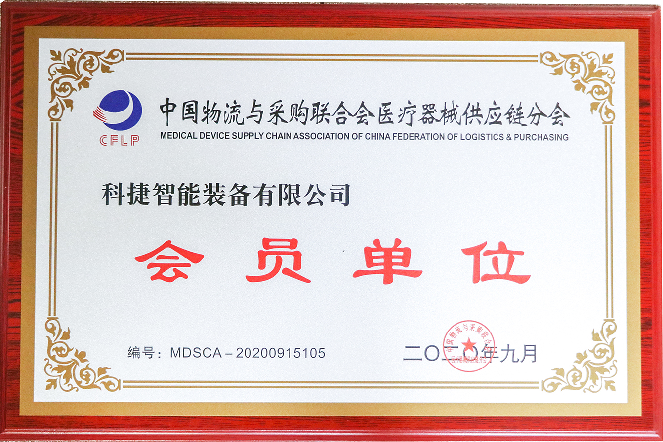 中國物流與采購聯(lián)合會醫(yī)療器械供應(yīng)鏈分會會員單位證書